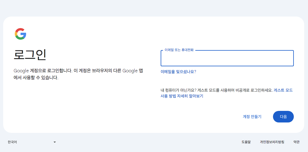 인터넷 검색창에 '구글 블로거'를 검색하거나 주소창에 blogger.com을 입력하여 접속합니다. 메인 화면 중앙에 보이는 블로그 만들기 버튼을 클릭합니다. 이때 평소 사용하는 구글 계정(Gmail)으로 로그인을 진행합니다. 만약 구글 계정이 없다면 먼저 계정을 생성해야 합니다.