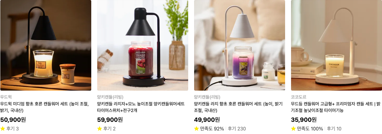- 추천 이유: 화재 위험 없이 은은하게 캔들 향을 즐길 수 있어 인기가 높습니다. 마블, 골드 등 디자인 오브제로 활용 가능한 세련된 제품을 선택하면 만족도가 높습니다.