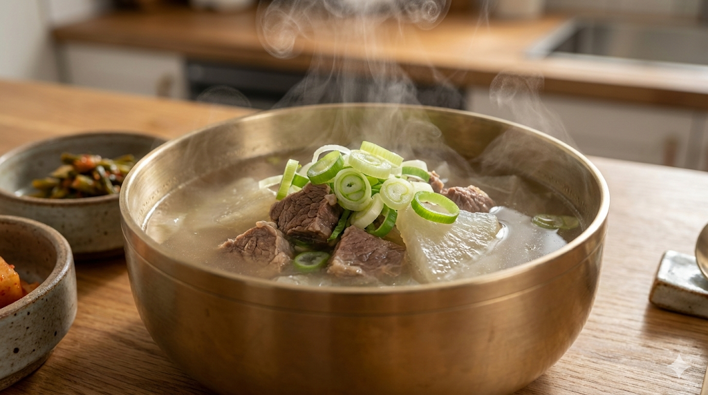 - 거품 걷어내기: 물이 끓어오를 때 위로 뜨는 갈색 거품은 고기의 불순물이므로 2026년에도 반드시 꼼꼼히 걷어내야 국물 맛이 깔끔합니다.