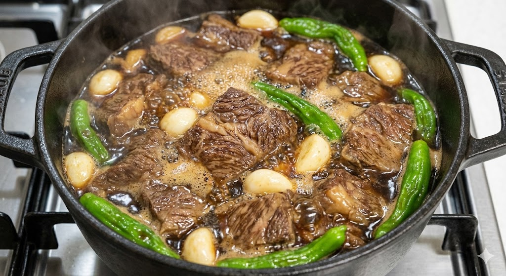 - 핵심 원리: 고기를 먼저 삶아 육수를 낸 뒤, 나중에 간장을 넣어 졸여야 고기가 질겨지지 않음.