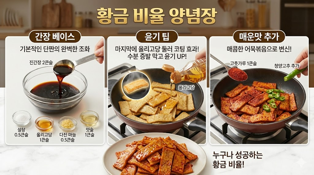 오뎅볶음은 누구나 할 수 있지만, 누구나 맛있게 유지하기는 어려운 요리입니다. 오늘 알려드린 **'물 약간'과 '올리고당 마무리'**라는 작은 디테일만 지켜보세요.