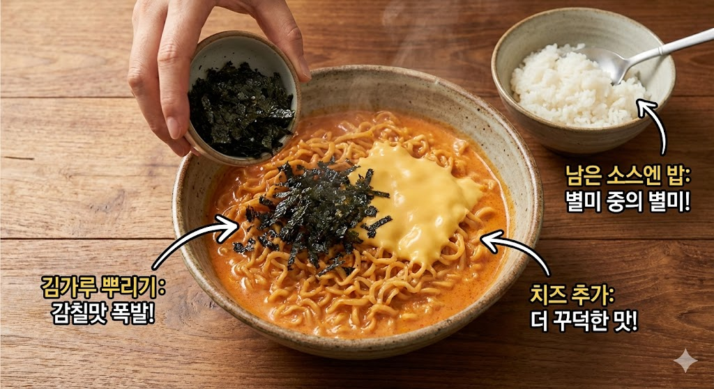 - 남은 소스엔 밥: 면을 다 먹고 소스가 조금 남았다면, 찬밥 한 숟가락을 비벼보세요. 이게 또 별미 중의 별미입니다!