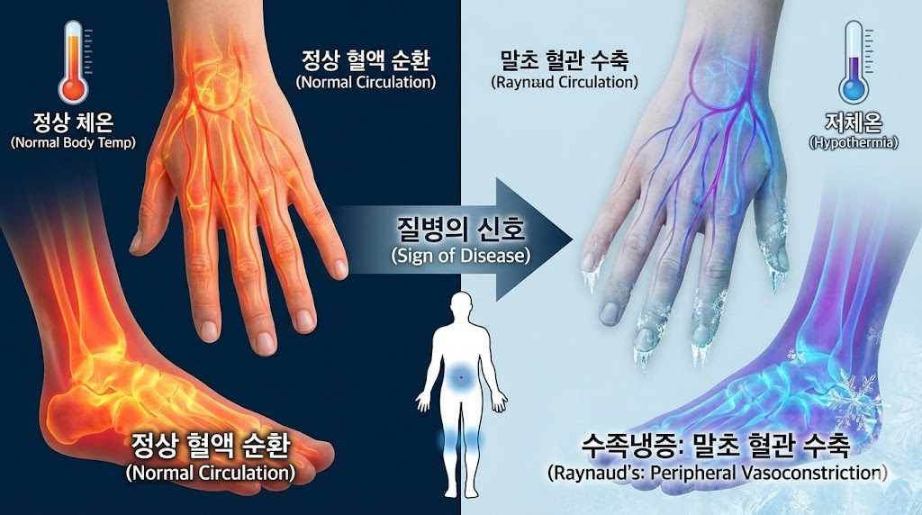 겨울철만 되면 손발이 얼음장처럼 차가워져 악수를 하기 두렵거나, 잠을 잘 때 수면 양말 없이는 잠들지 못하는 분들이 많습니다. 심지어 한여름 에어컨 바람 아래에서도 손끝이 시려 장갑을 찾는 경우도 있습니다. 우리는 흔히 이를 '수족냉증'이라 부르며 단순히 "나는 원래 몸이 찬 체질이야"라고 치부하곤 합니다. 하지만 수족냉증은 단순한 불편함을 넘어 우리 몸이 보내는 혈액순환의 적신호일 수 있습니다. 오늘 이 글에서는 수족냉증의 의학적 원인과 이를 해결하기 위한 구체적인 생활 습관, 식이요법, 그리고 반드시 감별해야 할 질환까지 깊이 있게 다루어 보겠습니다.